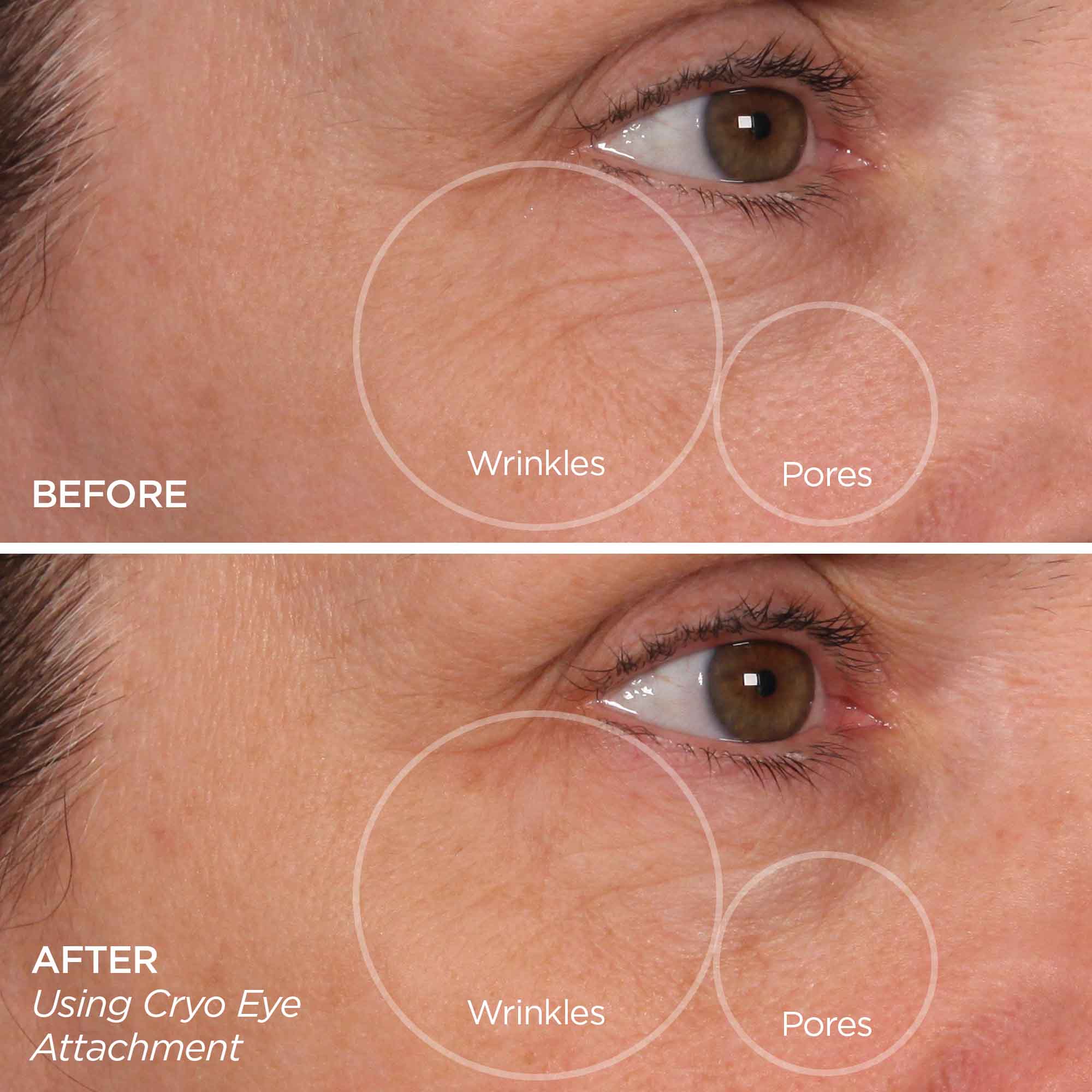 Use the narrow roller to target hard-to-reach areas such as under and above the eyes up to the brow bone, between the brows and down the sides of the nose.