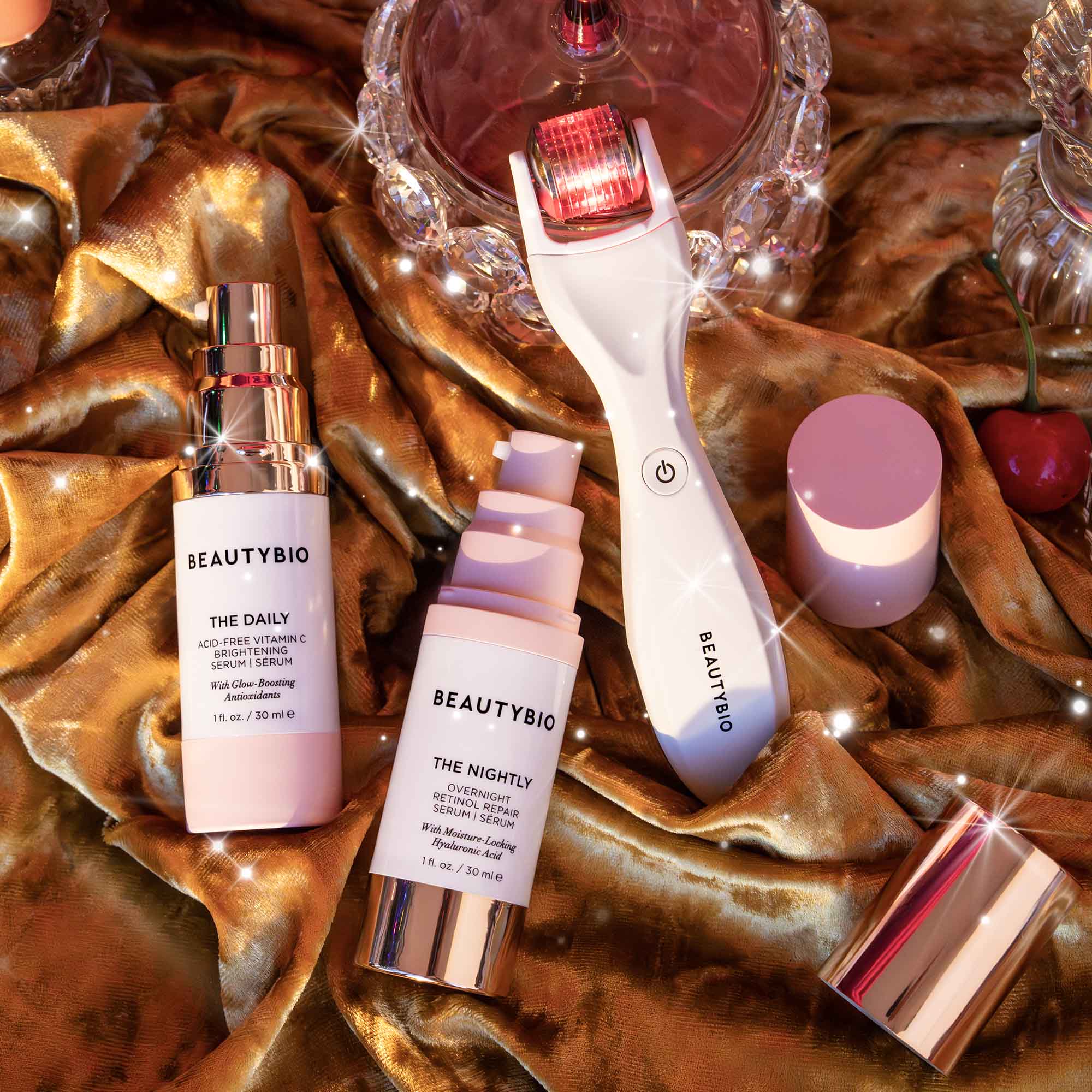 GloPRO® Microneedling Tool – Gently encourages skin’s natural rejuvenation process to help enhance skincare benefits for a firmer, smoother, more radiant-looking complexion. The Daily Vitamin C Serum – Helps brighten, smooth, and even skin tone with a gentle, non-irritating form of vitamin C for a visibly energized glow. The Nightly Retinol Serum – Gentle, slow-release retinol helps refine texture and visibly firm, while Hyaluronic Acid filling spheres hydrate overnight for a refreshed morning glow.