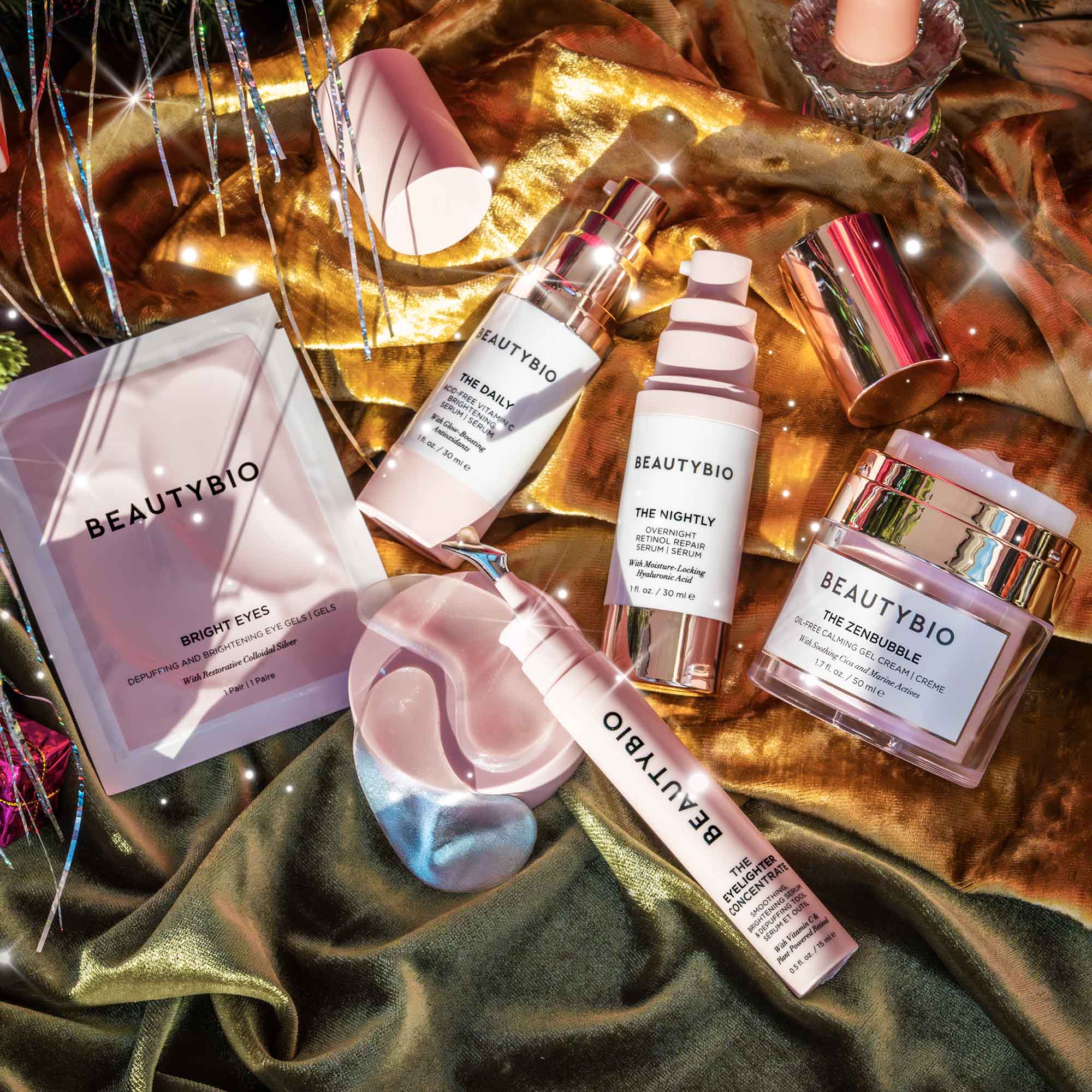 The Daily Vitamin C Serum – Dullness, uneven tone, and rough texture. Perfecting Blendrops SPF 46 – Uneven tone, fine lines, and visible texture. Bright Eyes Gels – Dark circles, puffiness, and dryness. ZenBubble Gel Cream – Redness, dryness, and enlarged pores. The Nightly Retinol Serum – Fine lines, uneven texture, and visible loss of firmness.