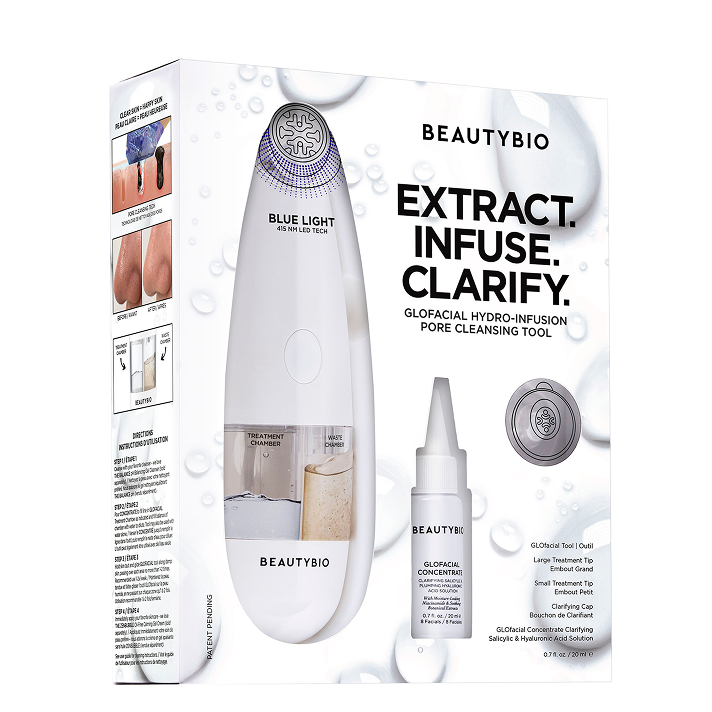 GloPRO® is an at-home microneedling tool designed to ignite your skin’s natural rejuvenation process & enhance topical skincare as microneedles glide over the skin. The GLOfacial tool is like a vortex vacuum for your pores, working to extract blackheads, excess oil, and impurities from your skin while delivering hydro-infusion skincare to clarify & hydrate.